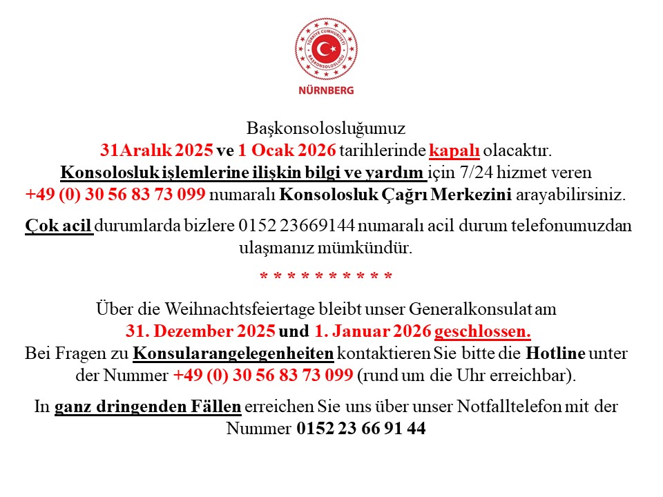 +49 (0) 30 56 83 73 099 numaralı Konsolosluk Çağrı Merkezini arayabilirsiniz.